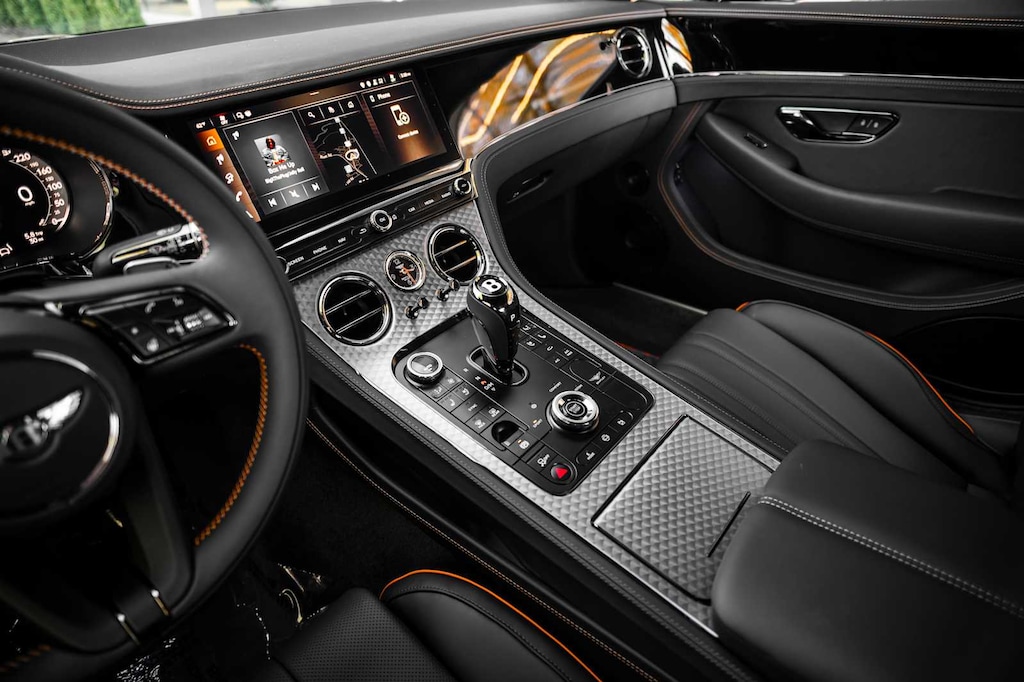 TOURING SPECIFICATION, RADIO: BANG & OLUFSEN FOR BENTLEY: 1,500 watts, 16 speakers and 3 DSP sound modes, BENTLEY ROTATING DISPLAY, PANORAMIC GLASS ROOF, FRONT SEAT COMFORT SPECIFICATION, CONTRAST STITCHING & SEAT PIPING: See dealer for color availability, DARK CHROME INTERIOR SPECIFICATION, DECORATIVE INSERT FOR CONSOLE - DARK TINT ENGINE TURNED ALUMINUM, MOOD LIGHTING SPECIFICATION, ANIMATED WELCOME LAMPS BY MULLINER, SELF LEVELING WHEEL BADGE BY MULLINER, SPORTS PEDALS, FRONT & REAR DEEP PILE OVERMATS, JEWEL FUEL & OIL FILLER CAPS, CONTRAST BINDING TO CARPET OVERMATS.